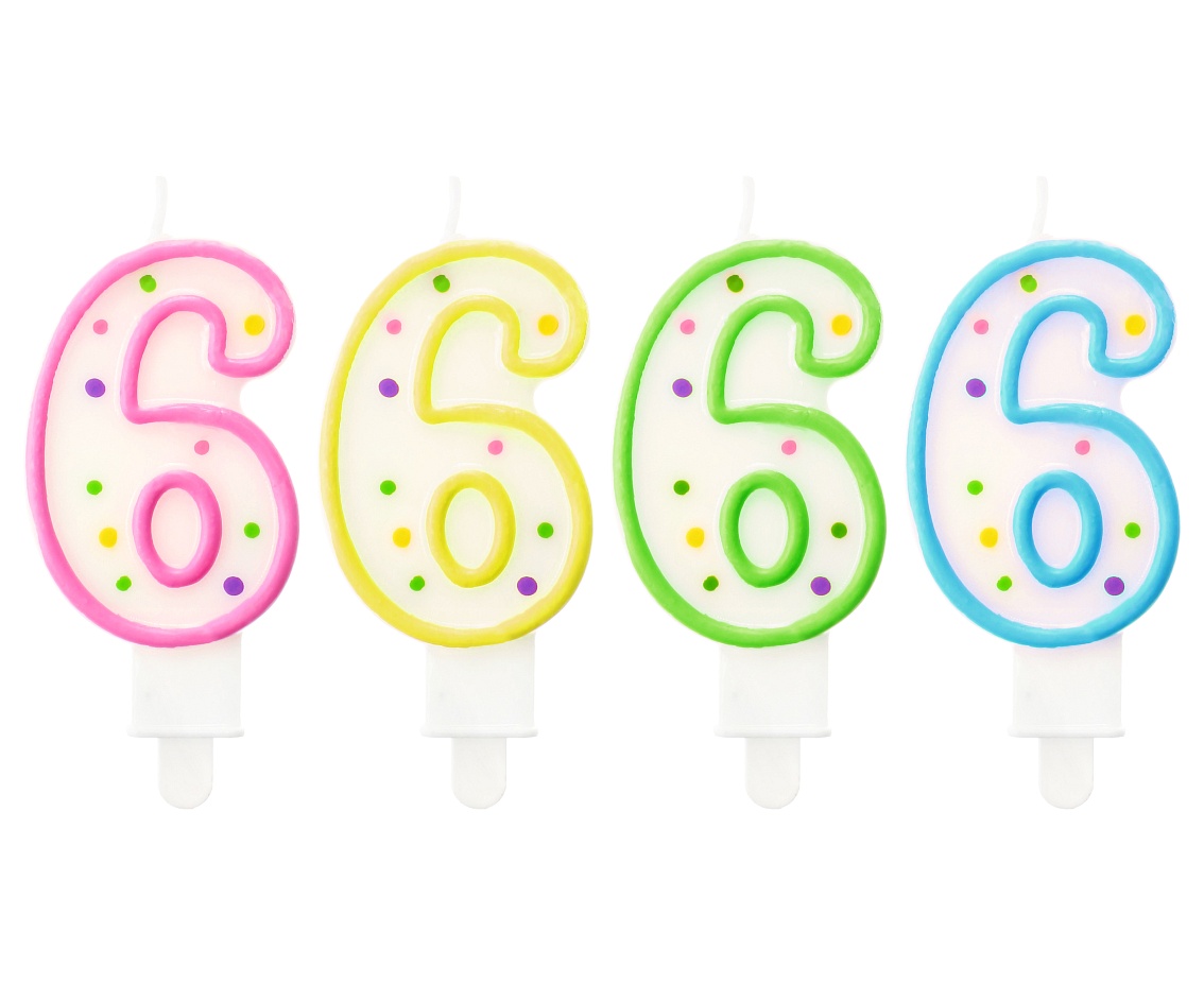 Lumanari de ziua de nastere in forma de numere iti vor permite sa decorezi un tort intr-un mod usor si rapid. Lumânarea „6” va atrage cu siguranță oaspeții tăi și persoana de naștere. Un copil de șase ani se va simți cu siguranță apreciat! O lumânare pentru ziua de naștere numărul 6 este potrivită și pentru sărbătorirea a 36 de ani sau a 66 de ani, trebuie doar să alegeți a doua lumânare potrivită. Lumânarea este realizată din materiale care sunt sigure de utilizat.