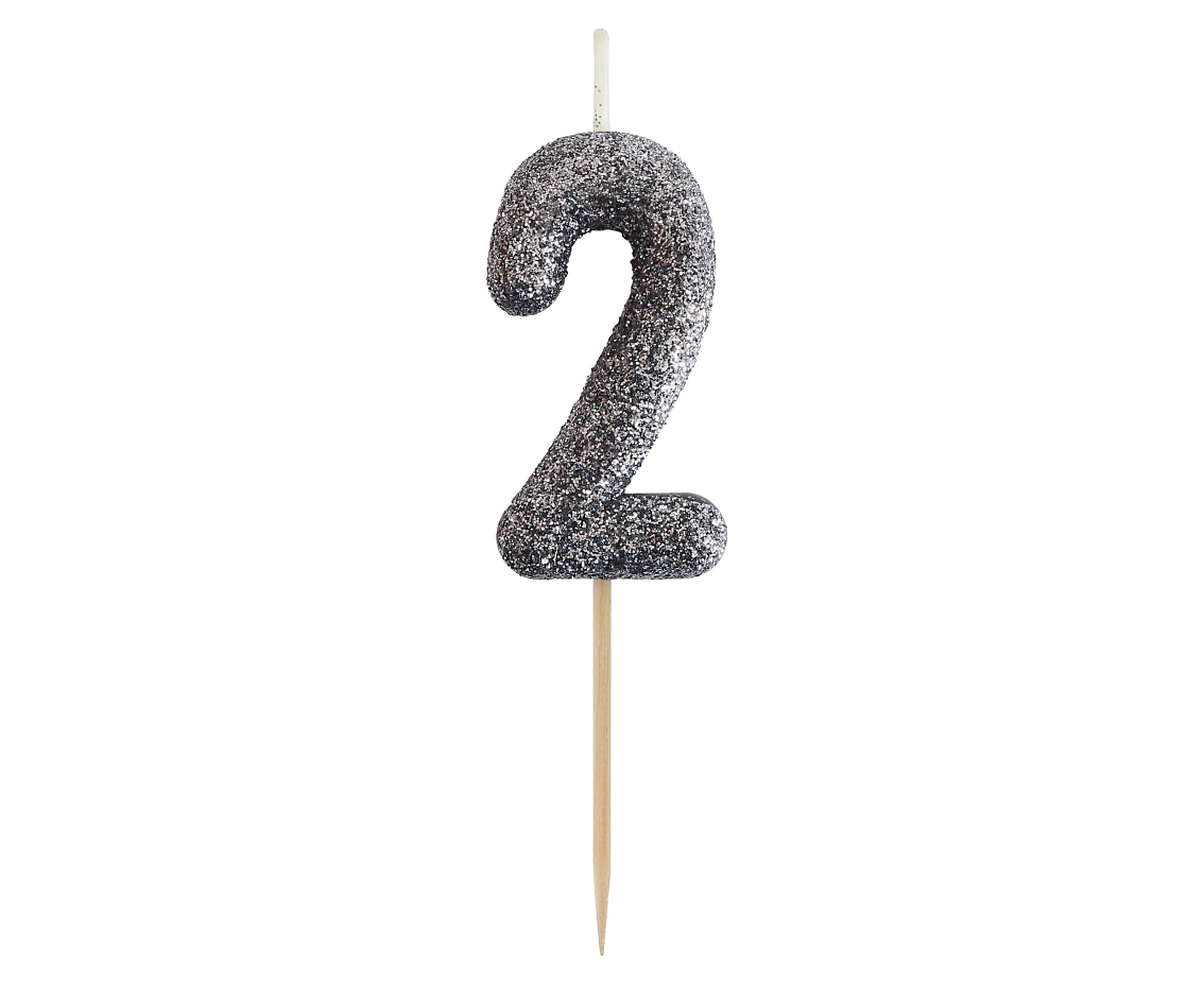 LUMANARI TORT B&C NUMBER 2, GLITTER BLACK, 11.5CM BH-SPC2