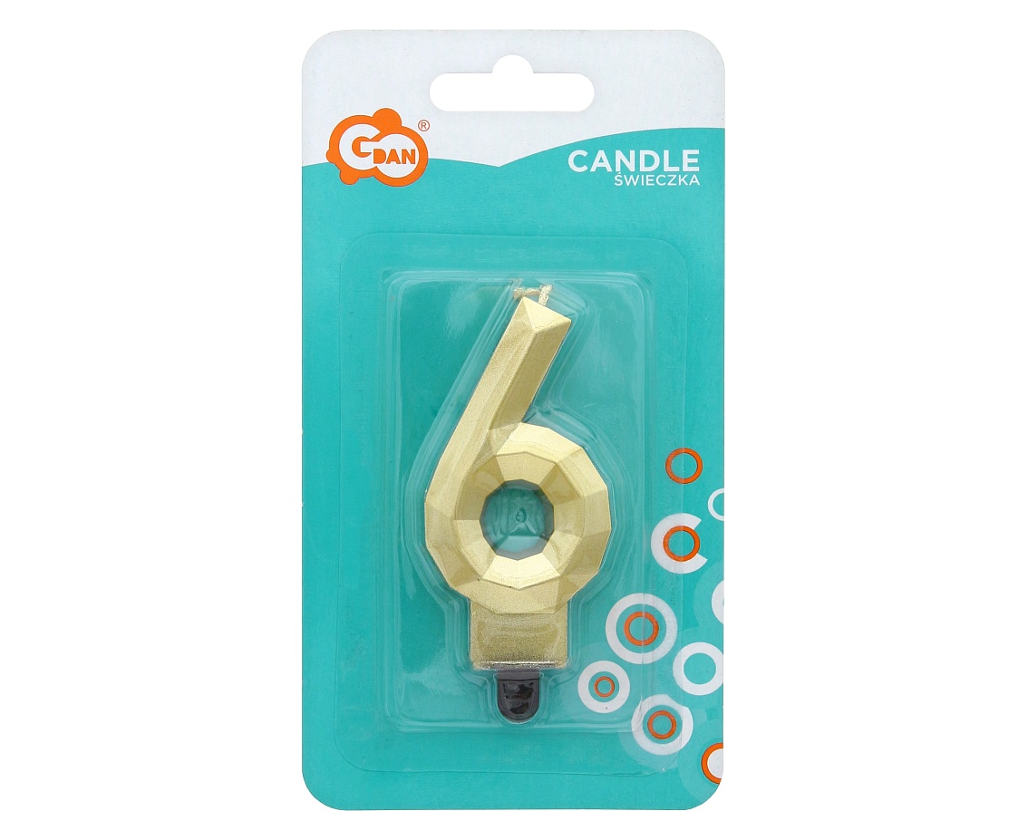 LUMANARI TORT NUMBER 6, DIAMOND, METALLIC GOLD, 7.6CM PF-SDZ6