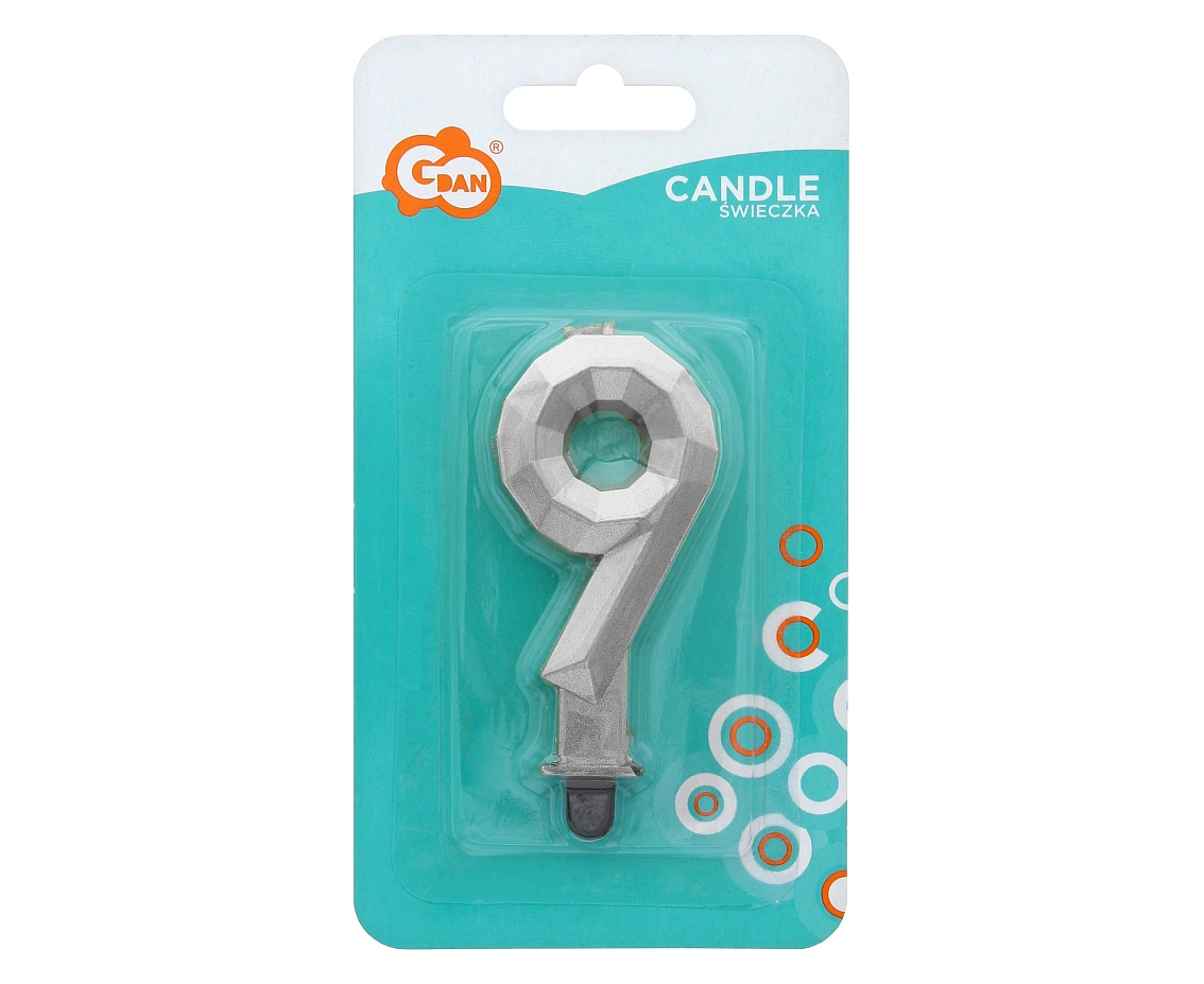 O lumânare elegantă, metalizată pentru tort, în formă de cristal de diamant. Este o idee grozavă pentru decorarea produselor de patiserie. Suporturile convenabile vă vor permite să montați ușor și convenabil o lumânare pe un tort sau într-un tort de ziua de naștere. Datorită lor, lumânarea cu numărul 9 va rămâne stabilă și va aștepta ca persoana care naște ziua să o stingă. Este alegerea perfecta pentru tot felul de aniversari, zile de nastere sau evenimente corporate.