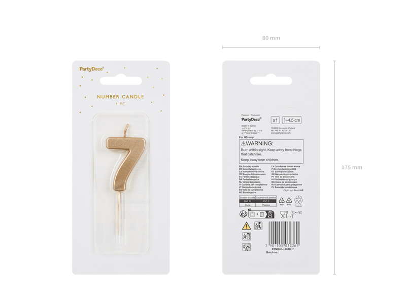 Sărbătorește a șaptea zi de naștere cu stil cu această lumânare numerică aurie! Această lumânare elegantă, în formă de numărul 7, este alegerea perfectă pentru tortul de ziua de naștere. Cu o culoare aurie strălucitoare, va fi cu siguranță un punct de atracție pe masă.