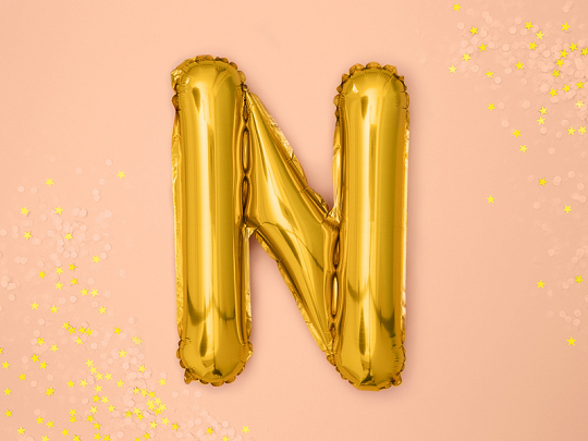 Metallic foil balloon Letter "N", gold, height approx. 35 cm (14").