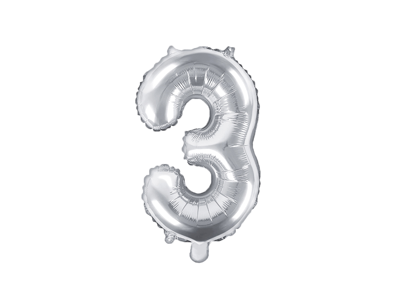 Foil Balloon Number "3", 35cm, silver