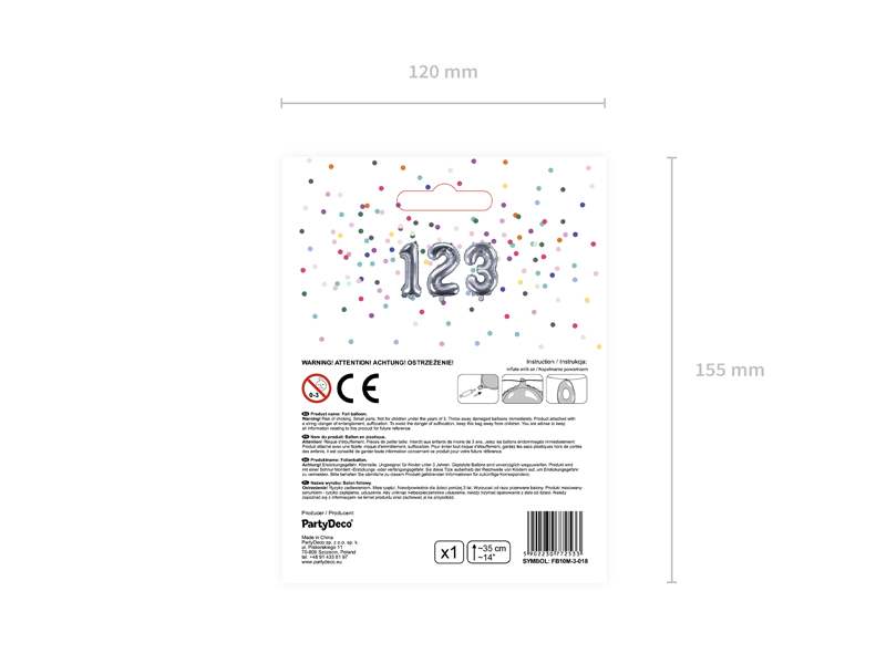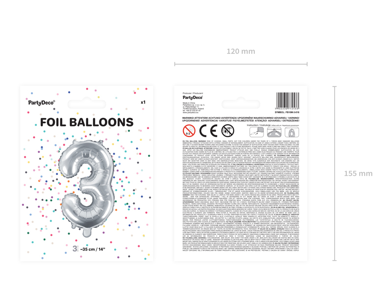 BALON FOLIE ALUMINIU NUMBER "3", 35CM, SILVER FB10M-3-018
