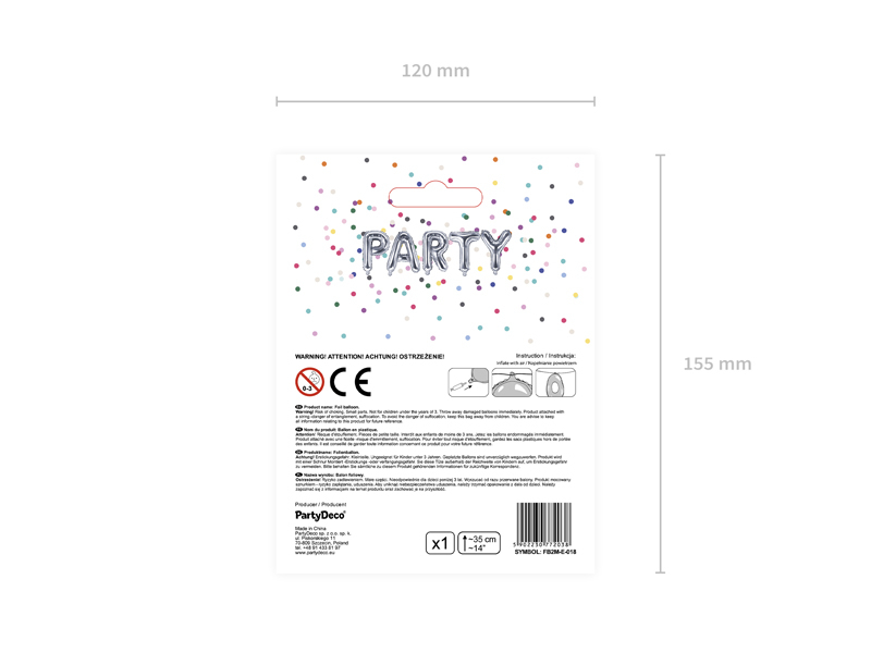 PartyDeco PD BALON FOLIE ALUMINIU Letter "E", 35cm, silver FB2M-E-018