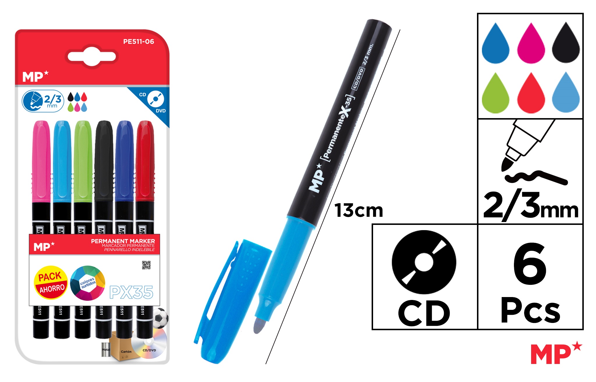 Corpul si capacul sunt de culoarea cernelei care e pe baza de alcool. Sunt ideale pentru notari vizibile pe majoritatea suprafetelor.