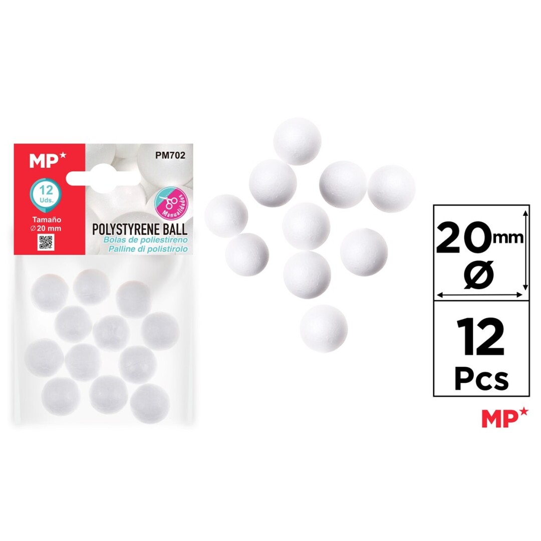 Bila albă din polistiren pentru Crafturi. Poate fi vopsita cu orice tip de vopsea. Dimensiune: 20 mm. set de 12 unități.