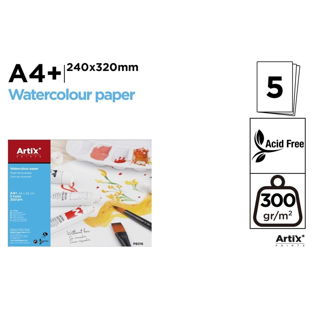 Bloc de Desen Acuarelă IPB A4+ ARTIX 5 Coli 300g/m2 PB316 - Hârtie de Calitate pentru Tehnici Umede