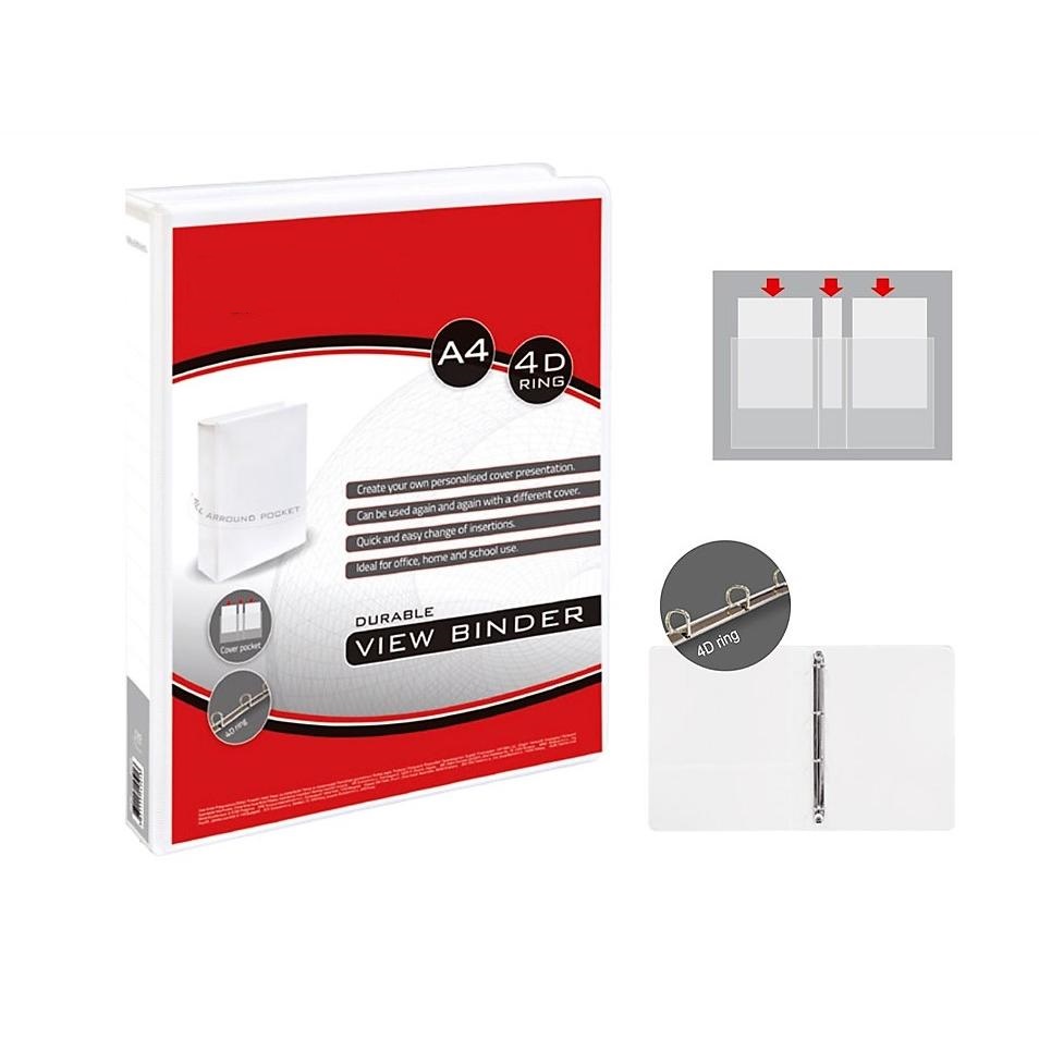 NPlastifiat PP la interior si la exterior, cu mecanism metalic foarte rezistent. Mecanismul de indosariat este format din 4 inele, usor de folosit. Buzunar transparent pe coperta si cotor, ideale pentru prezentari, cataloage de prezentare, sau indosarieri documente. Se pot indosaria folii de protectie documente, separatoare, dosare sau coli de hartie gaurite si introduse direct in mecanism. Format caiet mecanic: A4. Latime cotor: 5 cm. Diametru inel: 3 cm in forma de "D". Culoare: alb.