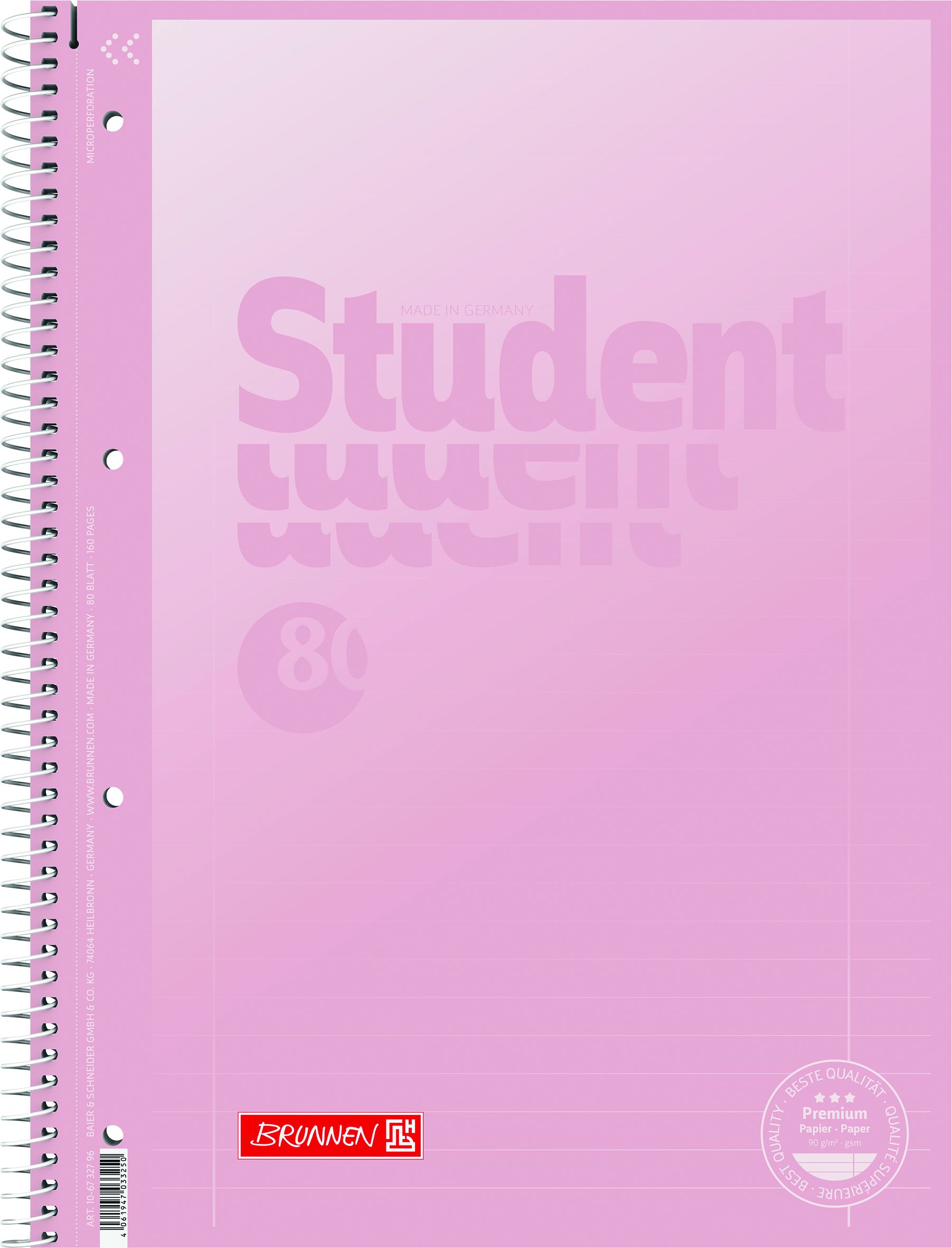 Caiet spiralat - A4 - 80 pagini - coperta soft touch - liniatura: linii, legare spirală - micro-perforație, 90 g / m²