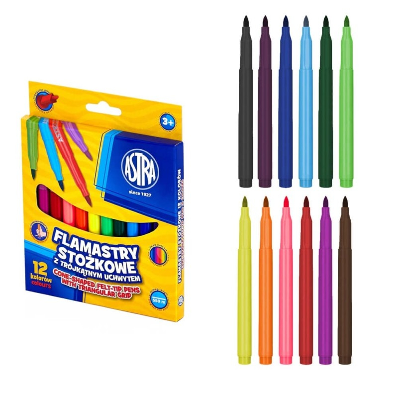 Set de markere conice ASTRA 12/SET VF CONIC CULORI INTENSE – perfect pentru creație, desen și proiecte artistice, oferind culori vibrante și durabile pentru ore întregi de exprimare artistică!