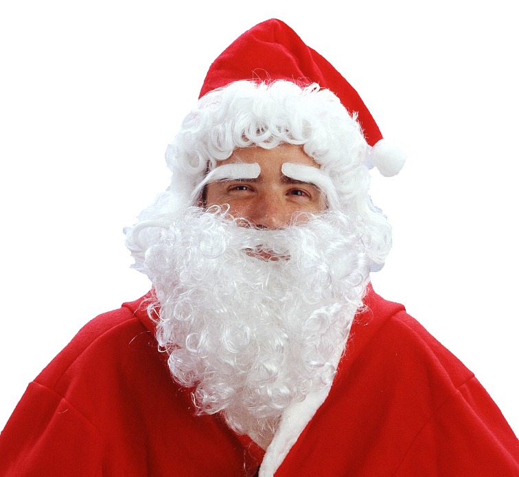Setul de Mos Craciun include: palarie, laterale, barba si sprancene care pot fi lipite.