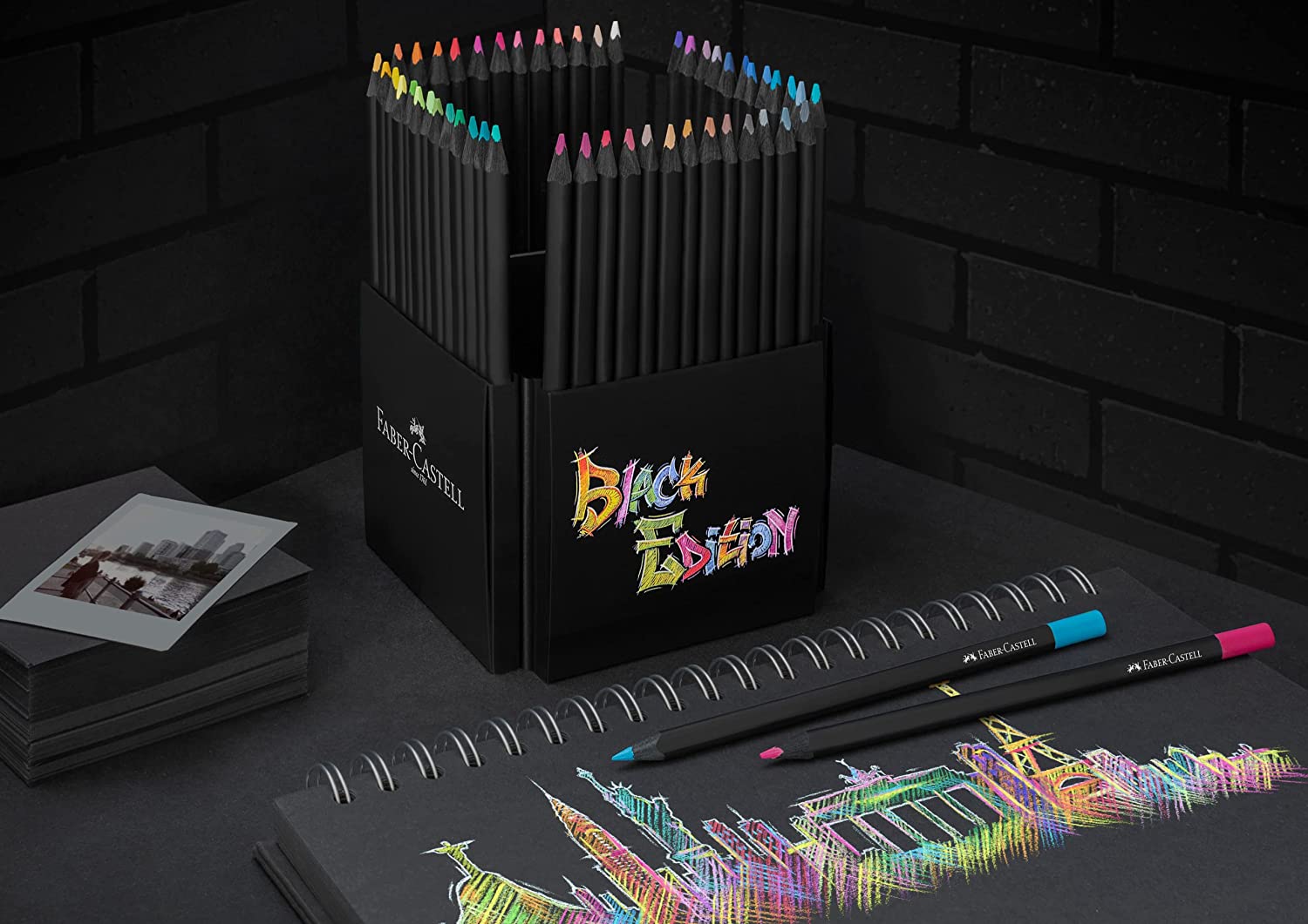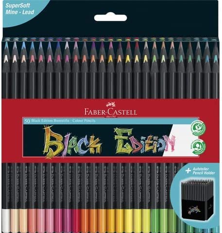The coloured pencils in the Black Edition contain 50 pencils in assorted colours. They have a lead thickness of 3.3 mm The super soft lead creates impressive effects, even on dark or coloured paper Ergonomic triangular shape - suitable for right and left handers Highest break-resistance due to secural bonding process (SV) Wood from certified sustainable forestry. Carbon-neutral production