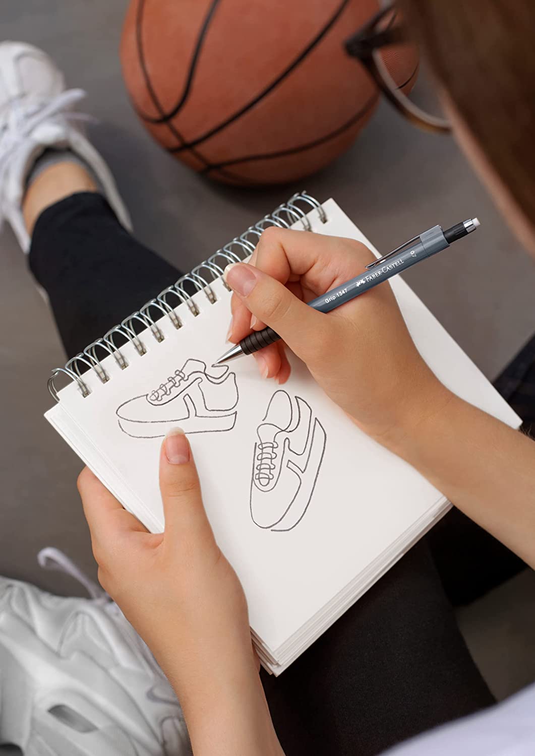 Creion mecanic Faber Castell, un creion de foarte buna calitate, in diferite culori metalizate atractive. Corpul creionului este realizat din material plastic, prevazut cu o zona grip anti-alunecare cauciucata. Creionul este prevazut cu un varf retractabil, o radiera lunga, retractabila si un clip rezistent. Creionul functioneaza cu mine de grosime: 0.5 mm