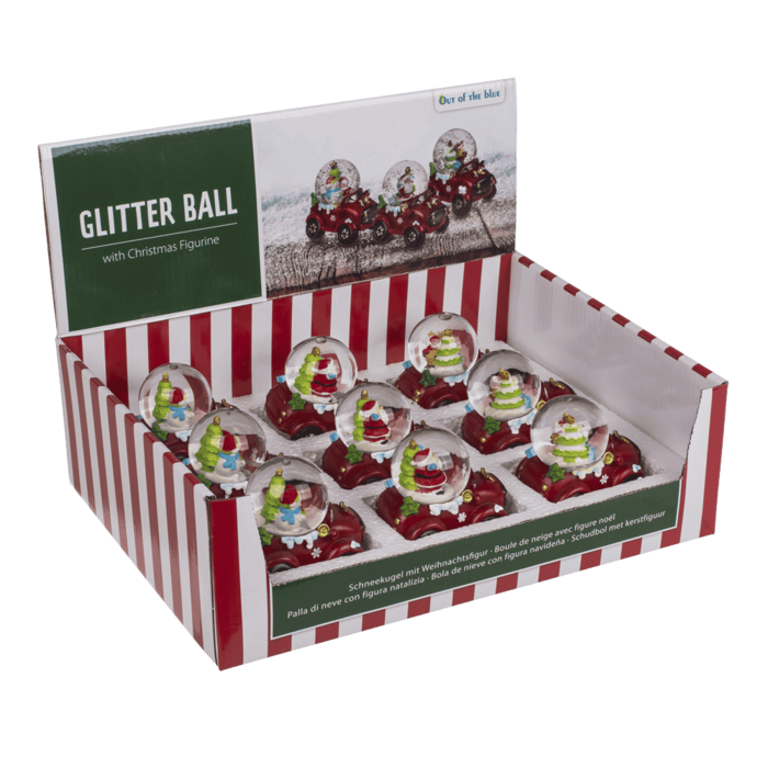 Globul este vândut individual și face parte dintr-un sortiment de 3 scene/aranjamente festive diferite, toate pe baza roșie în formă de mașină.