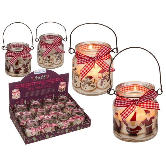 Suport Lumânare din Sticlă cu Mâner Metalic Country Christmas 945044