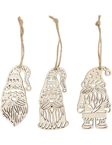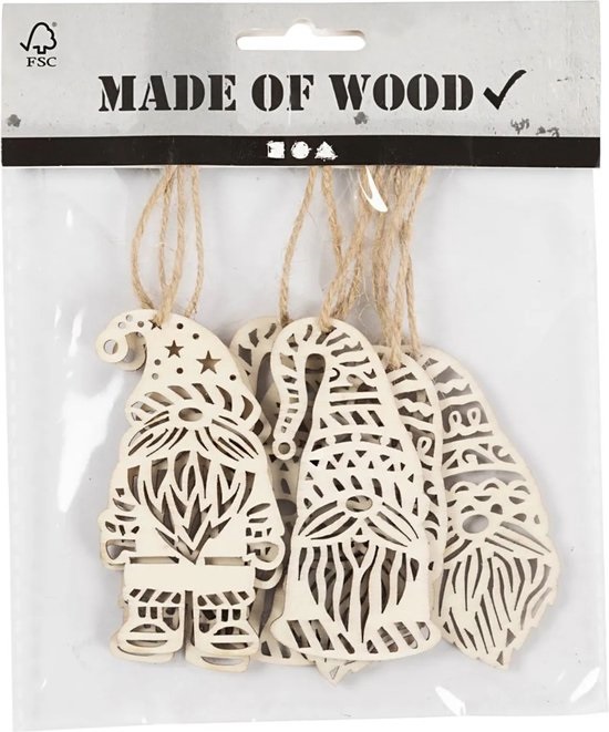 Wooden hangers made from wood with natural cord that you can decorate and hang up. Need some Christmas decorations? Then our small wood mountings are perfect. They feature Christmas elves, a classic Christmas motif. If you want to decorate the wood mountings, you can always use our hobby paint, which gives very good coverage. These cute Santa elves can be hung in your windows. on the Christmas tree or on branches from the garden, but first you can decorate them to suit your style:. Paint the elves with hobby paint, using the classic Christmas colours, or let your imagination run wild Decorate the elves with glitter for a magical, shiny look More Information SKU 58068 Unit pack EAN 5712854593830 Retail quantity 1 pack Content quantity 6 pc W 4 cm H 8 cm