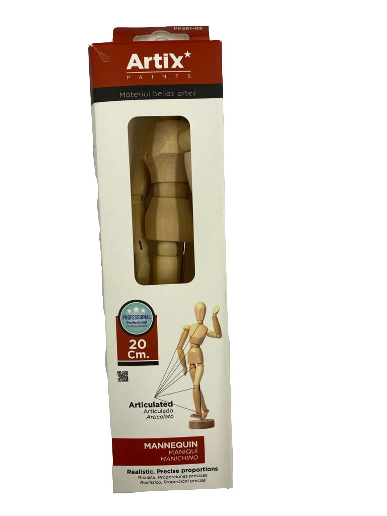 Acest manechin articulat permite practicarea desenului figurilor umane și a pozițiilor artistice.