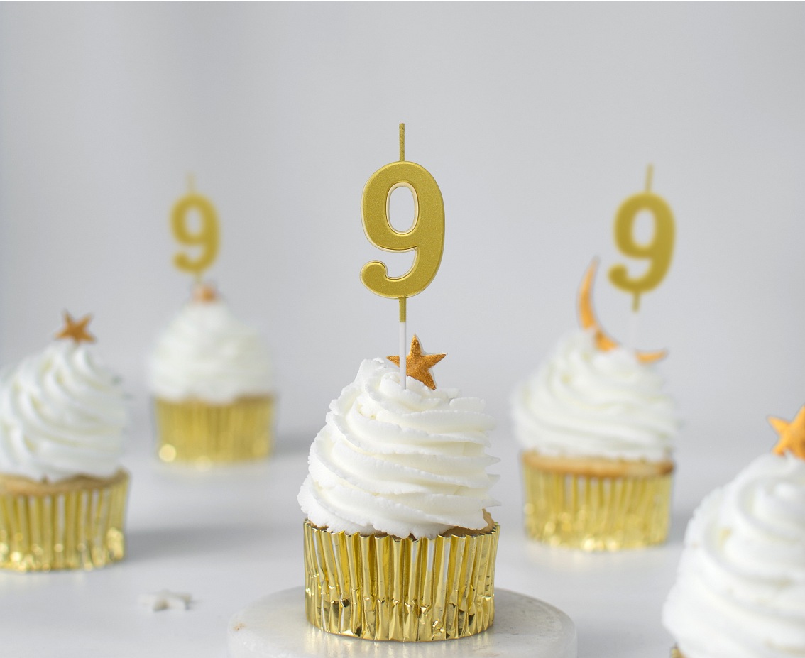 Etichete: metallic gold, GOD LUMANARI TORT B&C Number 9, 9.5*2.3cm BH-SPZ9