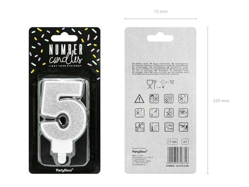 LUMANARI TORT NUMBER 5, SILVER, 7CM SCU3-5-018B