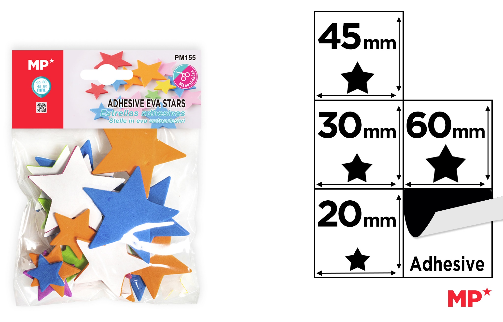 Aceste stele adezive din spumă Eva vin în diferite culori și dimensiuni, oferind o varietate de opțiuni pentru decorarea creativă. Setul include stele de 6 cm, 4.5 cm, 3 cm și 2 cm, astfel încât să puteți crea diverse aranjamente și modele.