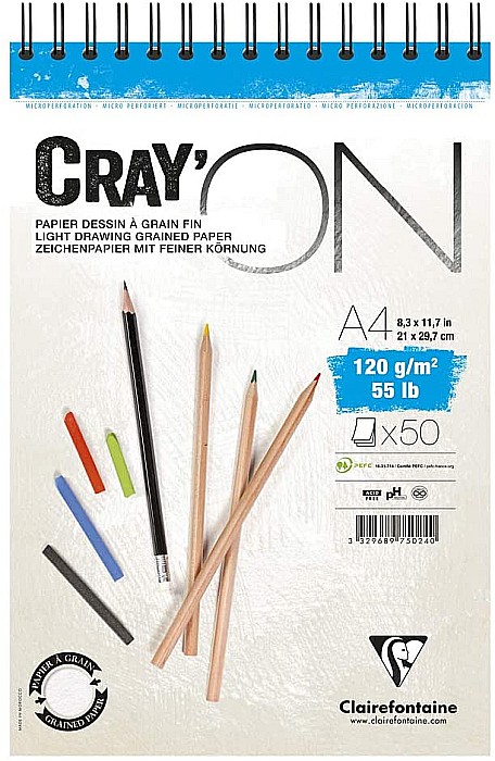 Bloc Desen Cray'on A4 50f 120gr Spira Clairefontaine 975024c