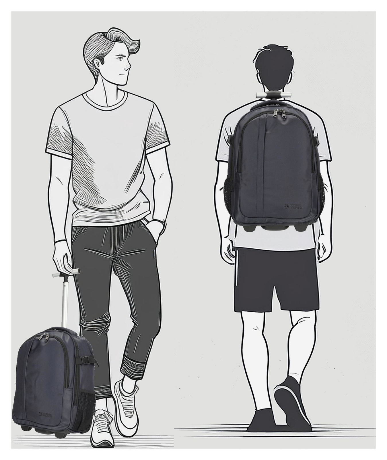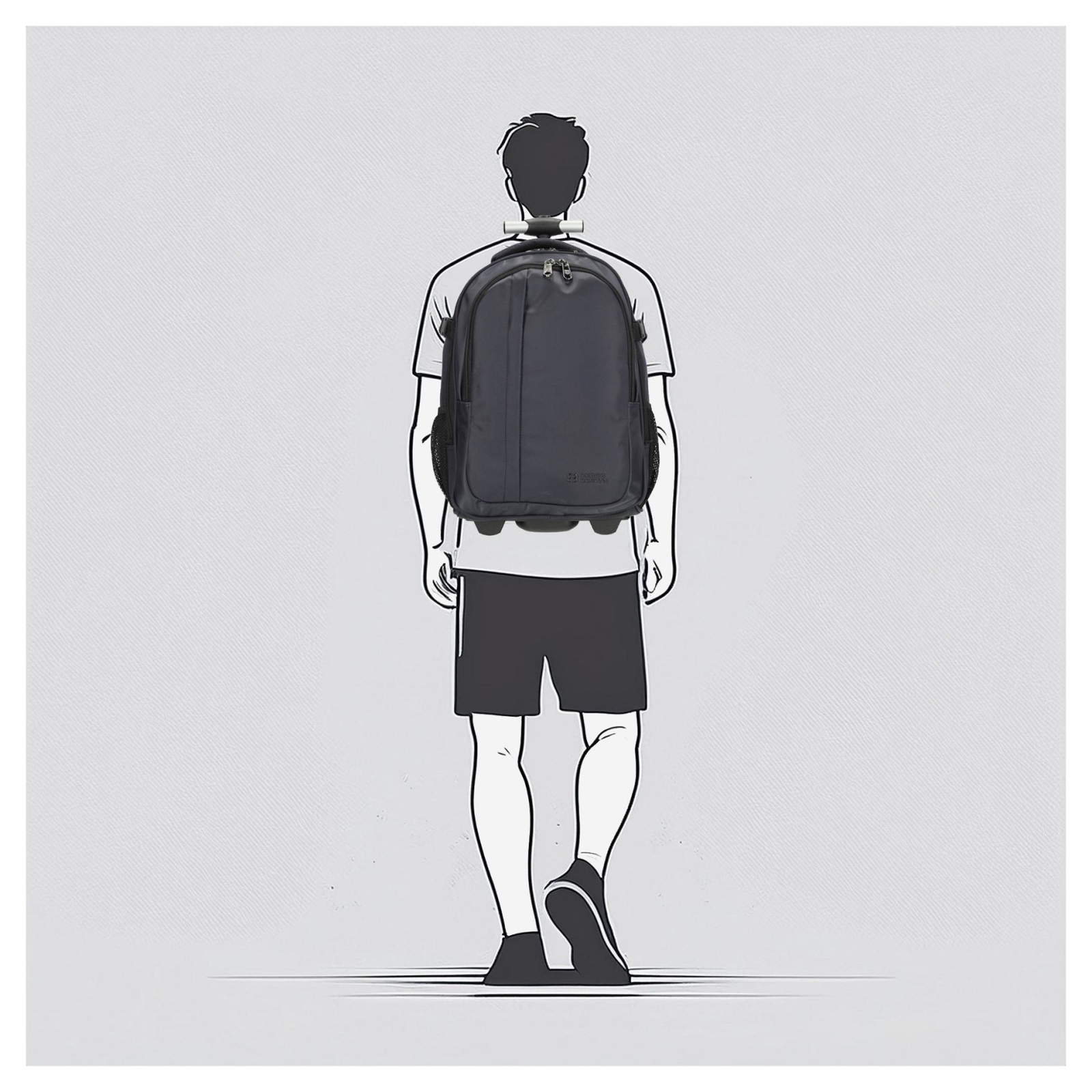 Flexibilitate 2 în 1: Poate fi purtat confortabil în spate ca rucsac sau transportat fără efort ca o valiză, datorită mânerului telescopic și a roților silențioase.