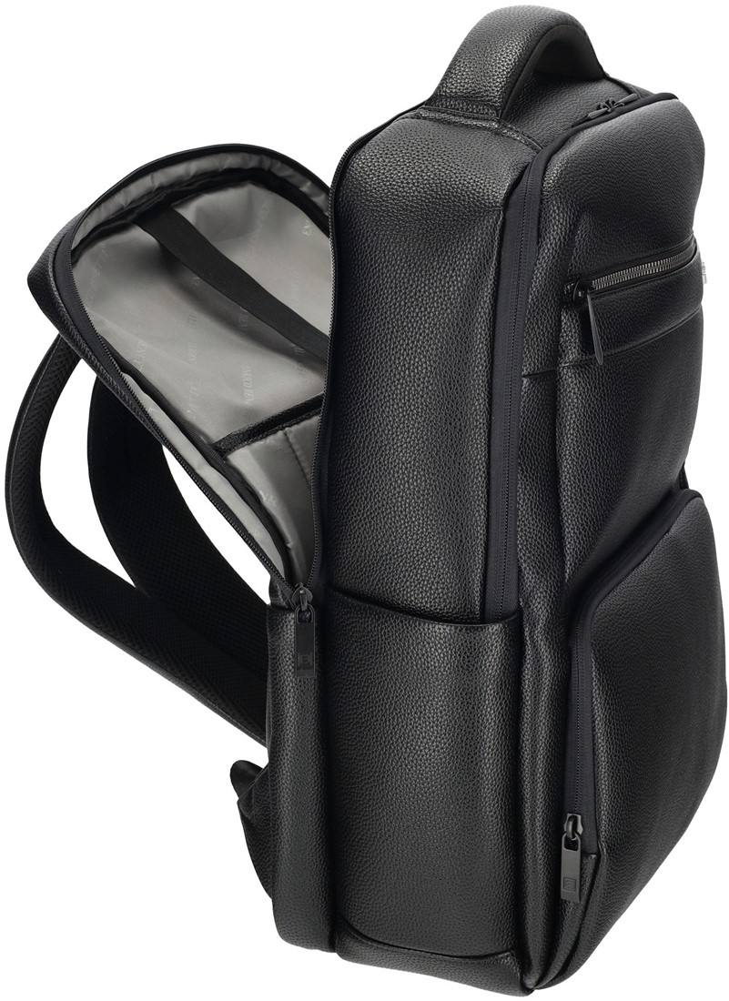 Rucsacul Enrico Benetti Siena (cod 62183001) este un rucsac business de 22 litri, fabricat din imitație de piele PU neagră, destinat profesioniștilor care transportă zilnic un laptop și accesoriile aferente. Cu dimensiunile de 43cm x 30cm x 17cm și compatibilitate pentru laptopuri de până la 17 inch, este potrivit pentru utilizare office, călătorii de afaceri și deplasări zilnice în care aspectul elegant și organizarea riguroasă sunt la fel de importante. Este disponibil pe ipb.ro.