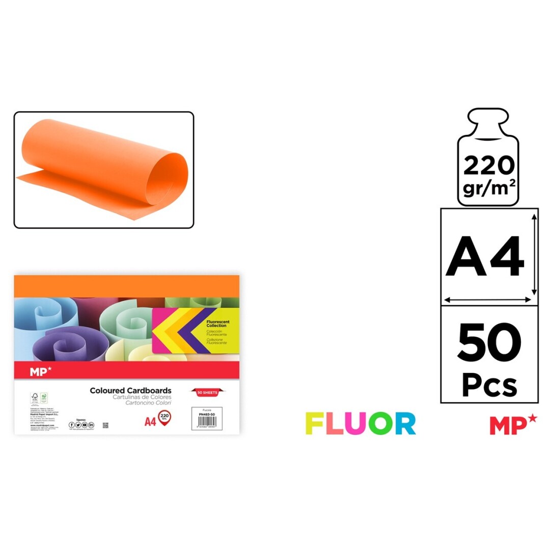 CARTON COLOR IPB A4 220GR 50/SET PORTOCALIU NEON PN484-50