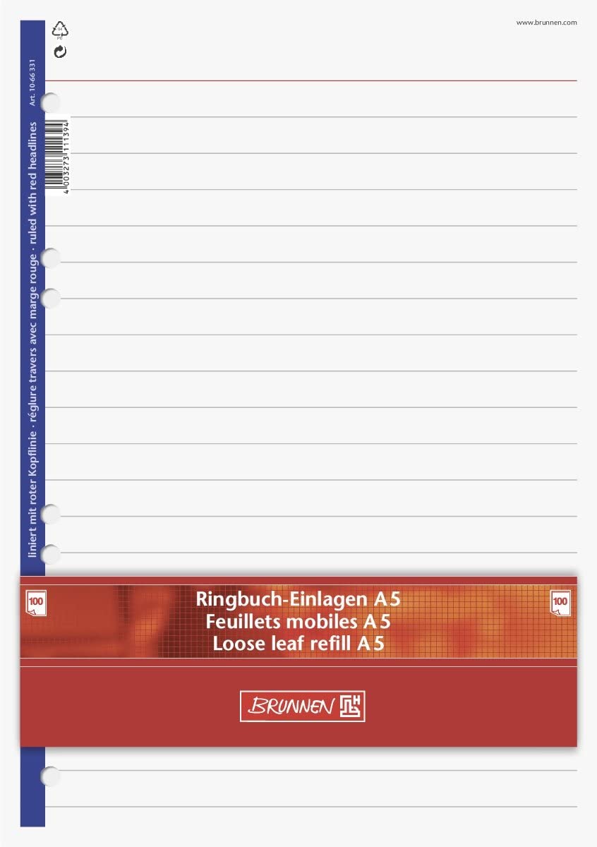 Rezerva pentru caiet mecanic, format A5, 100 file, 70 g/mp, dicatando(linii), 6 perforatii.