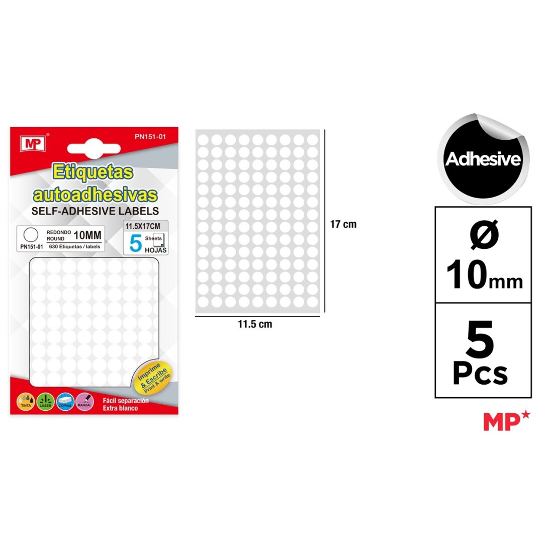 ETICHETE ADEZIVE IPB 10MM 5 COLI/SET 630 BUCATI ROTUNDE PN151-01