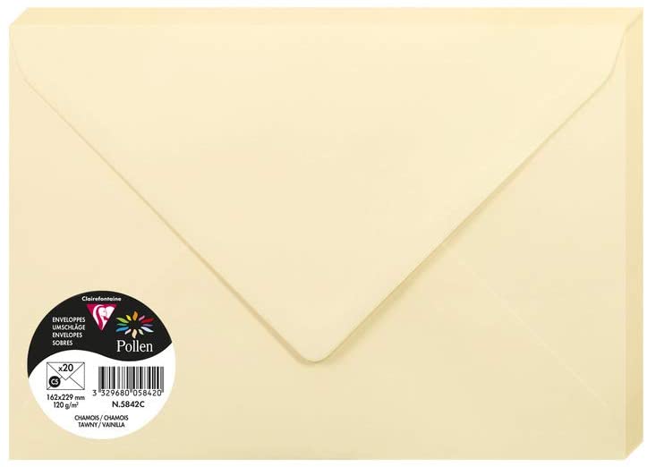 Producator: POLLEN-CLAIREFONTAINE, Franta Hartie de 120 gr/m2 Dimensiuni: 162 x 229 mm Tip lipire: banda silicon Tip hartie: simpla Ambalare: set de 20 plicuri Plicuri ideale pentru trimiterea tuturor invitațiilor dvs., greutate 120g. Gama Pollen by Clairefontaine a luat naștere în 1997. Initial compusă din 10 culori, s-a dezvoltat de-a lungul anilor. Astăzi, gama este bogată și oferă mai mult de 40 de culori luminoase, pastelate și iridiscente. Peste 1000 de referințe vă vor permite să derulați toate proiectele dvs. în papetărie creativă. Diferite formate sunt disponibile pentru a fi cât mai aproape de nevoile tale pentru comunicarea și anunțarea evenimentelor importante din viața ta. Hârtiile și plicurile POLLEN sunt printabile cu jet de cerneală, laser. Hârtie PH neutru.