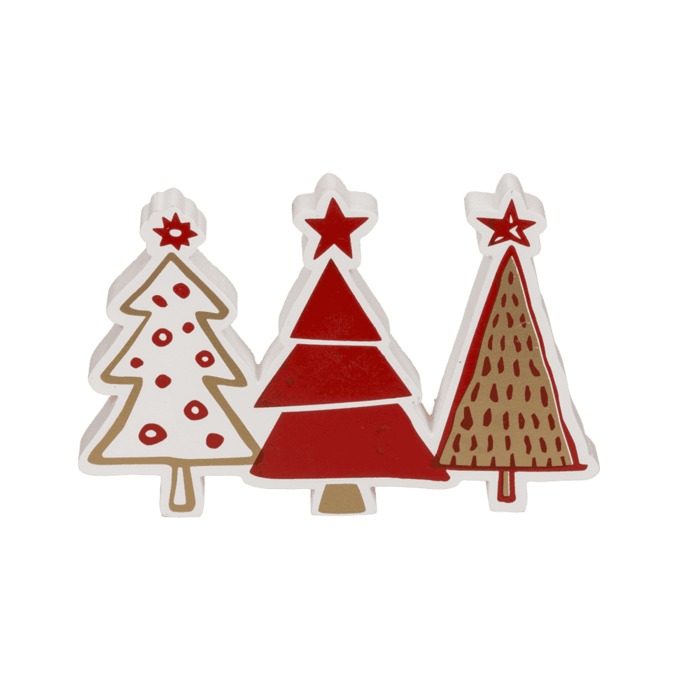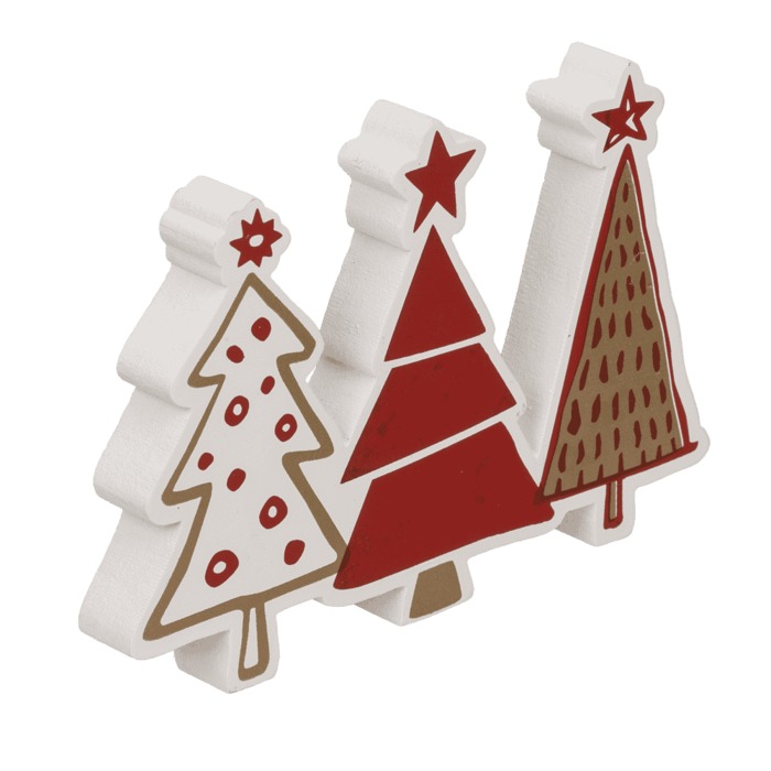 Decorațiune Crăciun Braduleți Lemn 15x2x10cm Alb-Rosu (960435) - Accesoriu Festiv Atrăgător