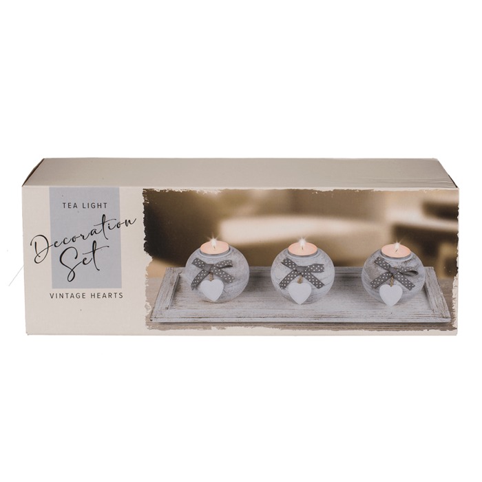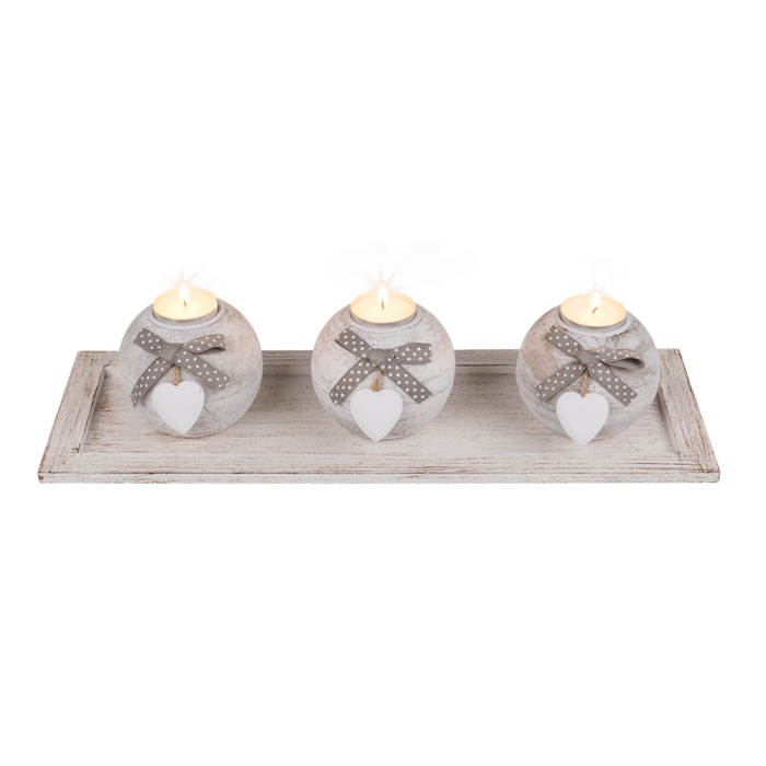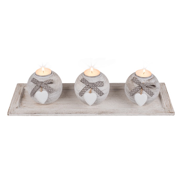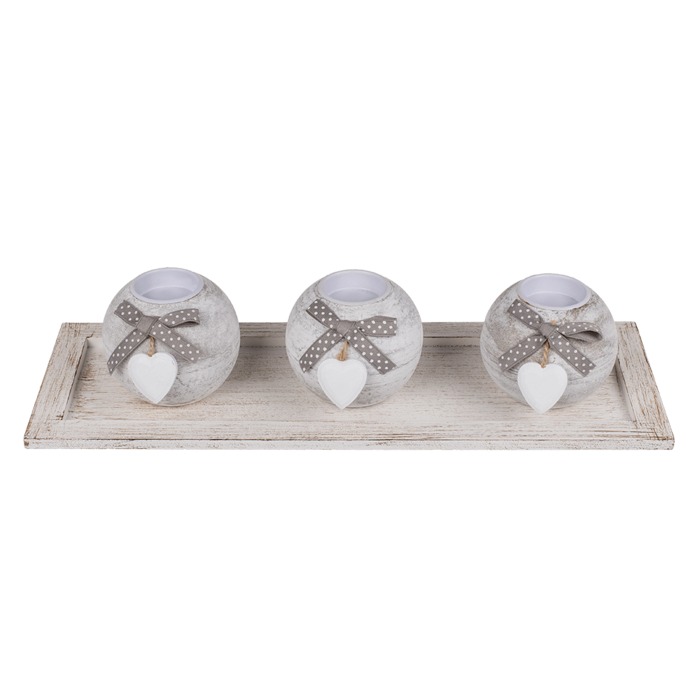 Suport Lumânări din Lemn 40x14cm cu Tăviță și 3 Globuri 350125