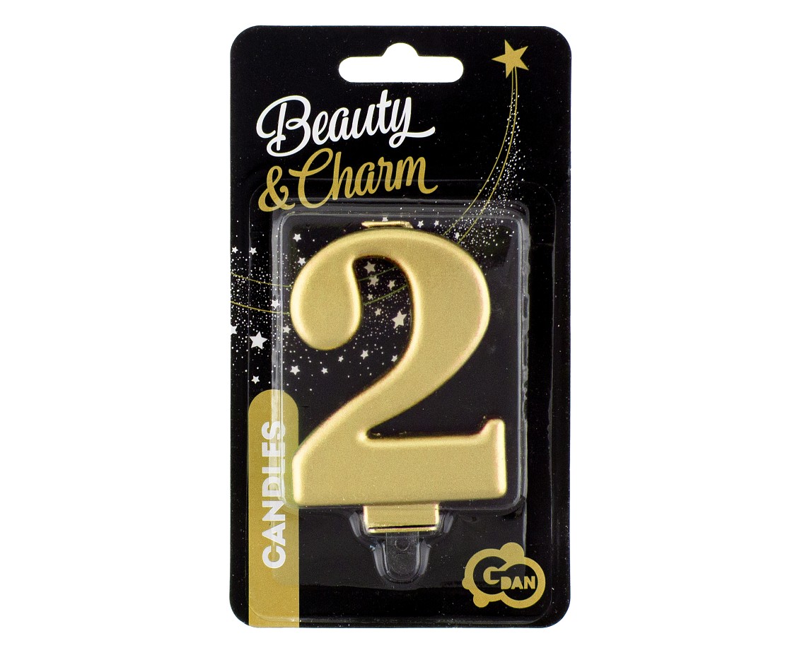 LUMANARE TORT NUMBER 2, METALLIC GOLD, 8CM PF-SCZ2
