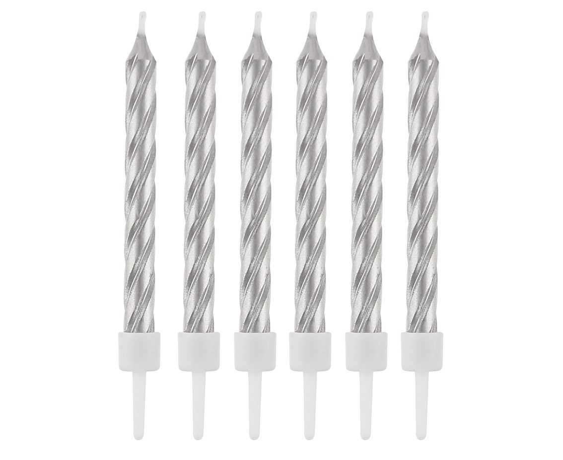 Lumanari Tort Candles With Holders, Swirl Silver 8cm, 12/Set Sf-Szsr