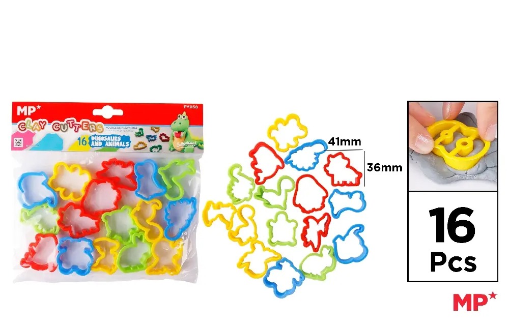 Set de 16 forme de modelare în diferite forme de dinozauri, perfecte pentru activități creative cu plastilina.