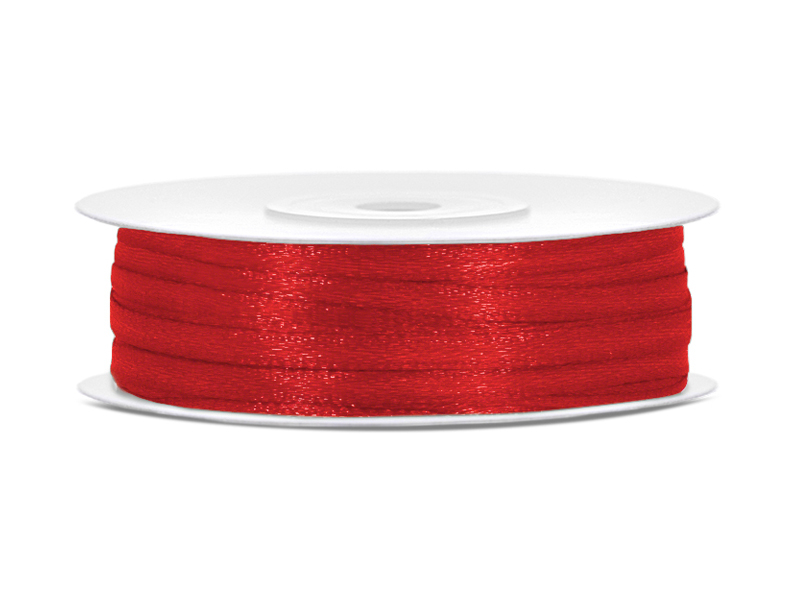 Satin Ribbon, red, width 3 millimeters, length 50 metres. 1 pkt / 1 pc. EAN: 5902230713291 symbol: TS3-007