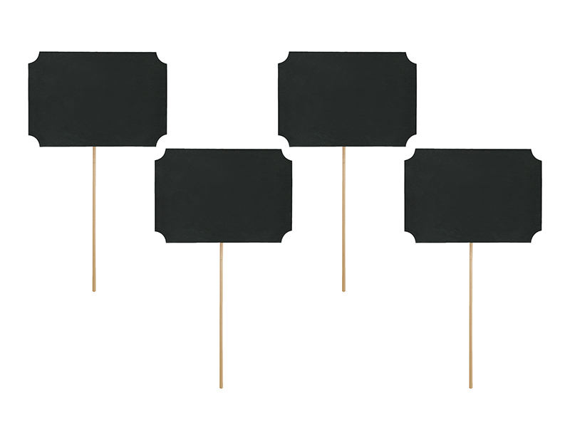 Cards on a stick, black, with a free text field, ideal for table numbers, size 11x8 centimeters. 1 pkt / 4 pc.