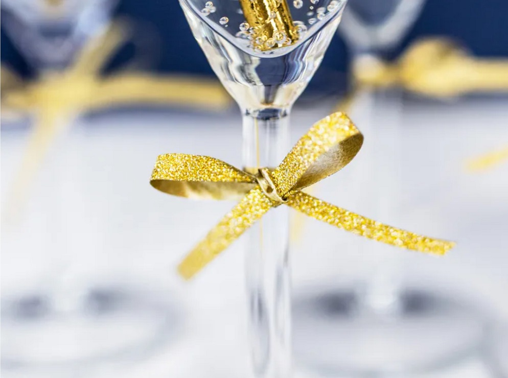 Panglică din plastic cu sclipici, auriu, lățime aprox. 5 mm, lungime aprox. 225 m. 1 buc. / 1 buc.