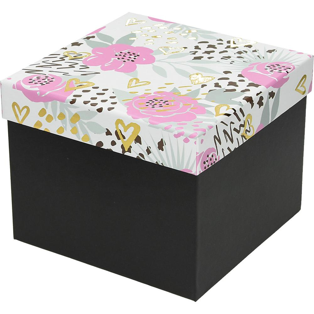 Cutie cadou flori 21x21x16cm - model 75012, cu folie și prelucrare suplimentară, ideală pentru prezentarea florilor sau cadourilor elegante.