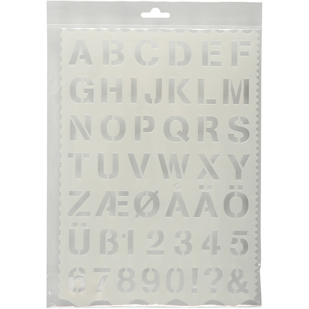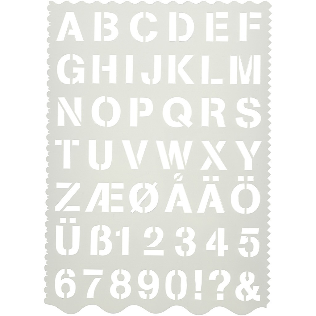 Sablon din plastic alb cu litere(A-Ă) ,numere(0-9) si simboluri