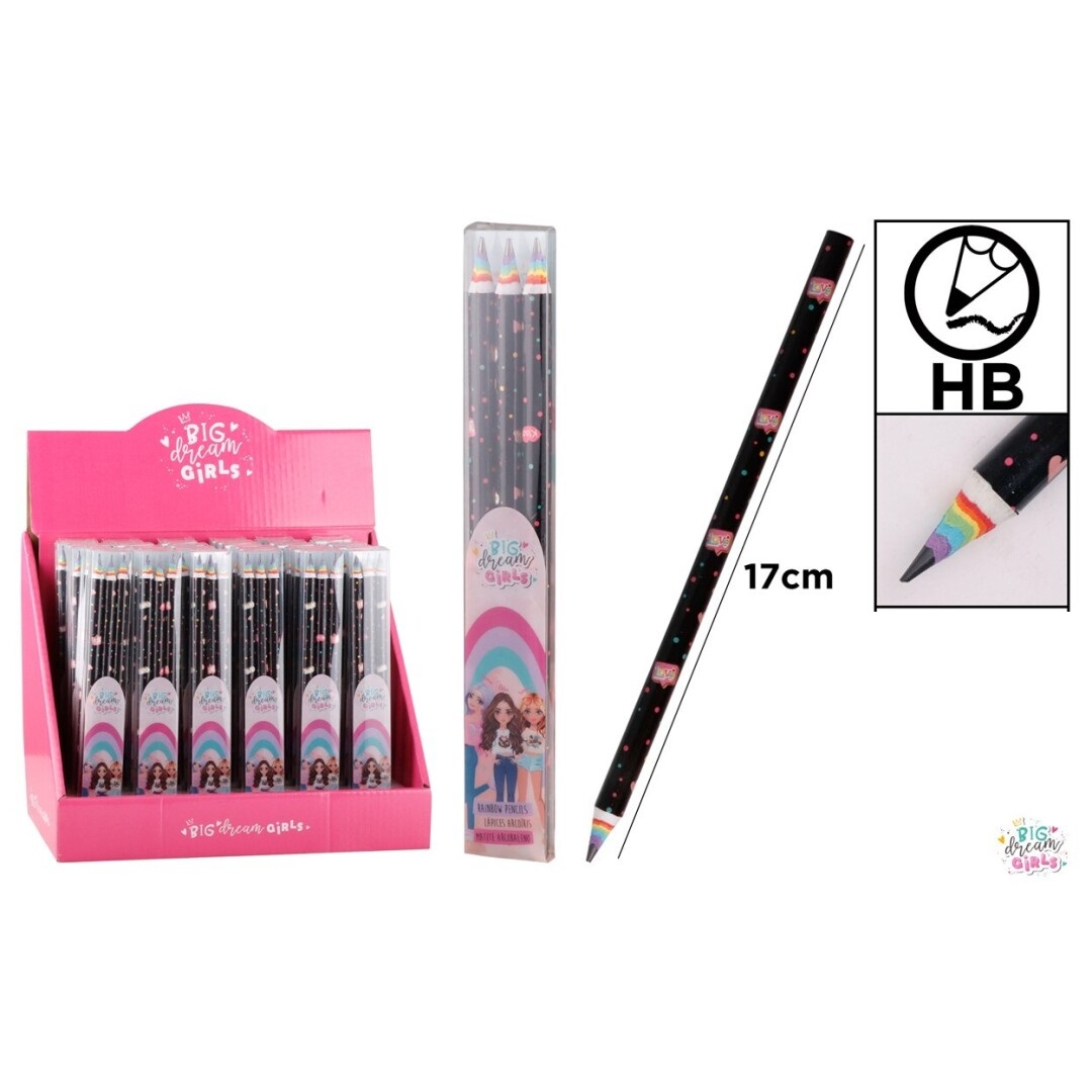 Etichete: școală, Versatilitate, Decorate, Bucurie, Experiență de scris, Inspirație Creativă, Activități artistice, Creioane curcubeu, Big Dream Girls, BD011, Corp rotund, Mine HB, Lemn curcubeu, Set de 3 creioane, Ambalaj expozițional, 36 de unități, Colecționari, Distribuire, Capăt galben, Dimensiune 180mm, Experiență de desen, Design tematic, Big Dreams Girls, Accesorii cu personalitate, Activități de birou, Blistere de 4 unități, Protejate, Gestionare ușoară, Univers colorat, Exprimare creativă, Mod unic, instrumente de scris, Copii, Comercial, Farmec