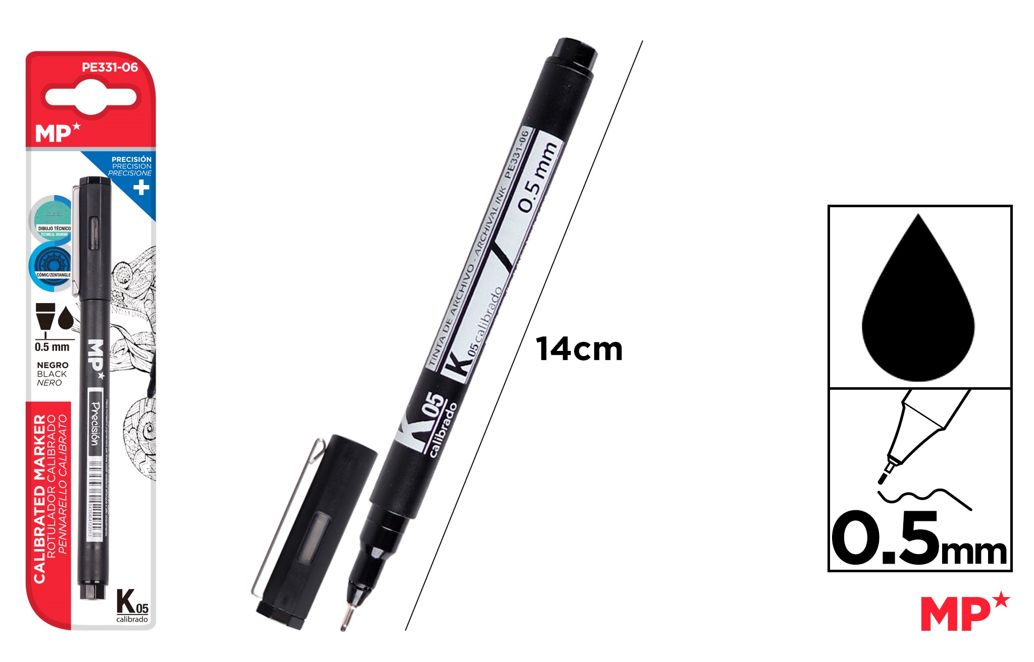 Fineliner MP pentru scriere, schita, desen, design grafic, mandale, benzi desenate, etc. Ideal pentru utilizare cu rigle si sabloane. Cerneala pe baza de apa. Varf: subtire, prevazut cu protectie metalica. Grosime scriere: 0,4 mm. Culoare: negru. Pretul se refera la o bucata.