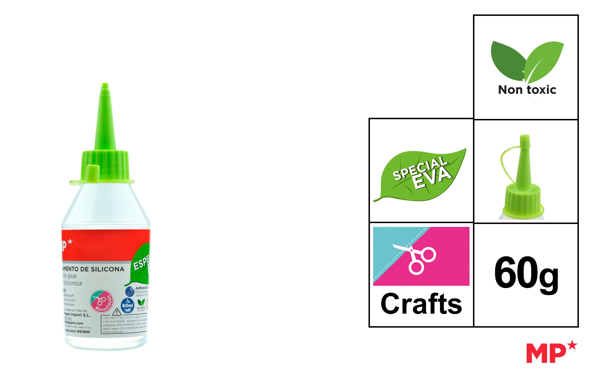 Adeziv siliconic lichid perfect pentru lipirea Evarubber, hârtie, plastic și carton. Total transparent, care nu lasă urme. Special pentru crafturi și uz școlar. Nu este toxic. Aderență excelentă. Flacon transparent cu închidere de siguranță și duză fină pentru aplicații precise. Flacon de 60 ml.