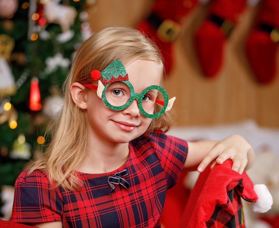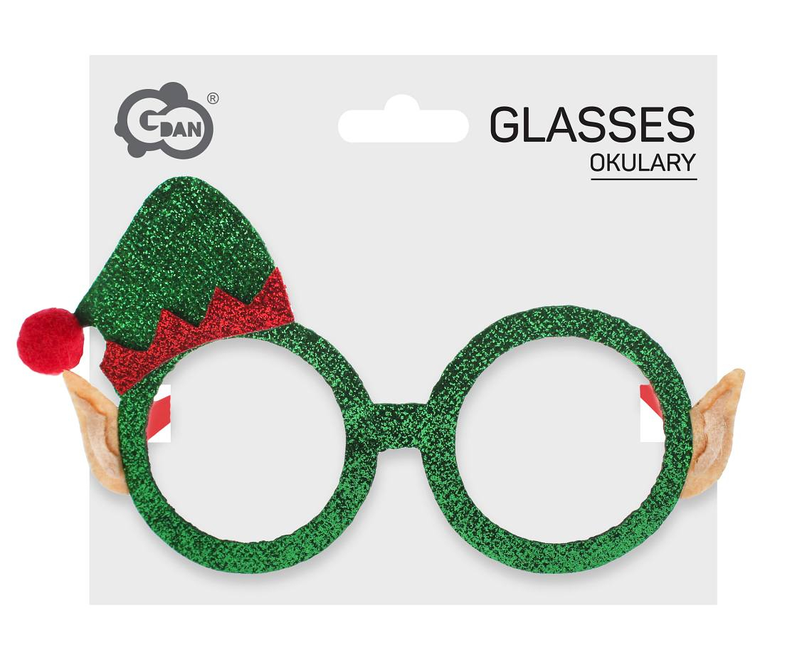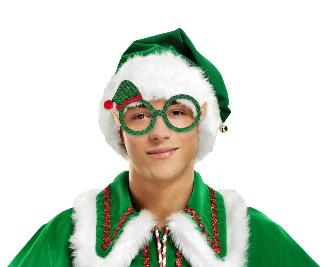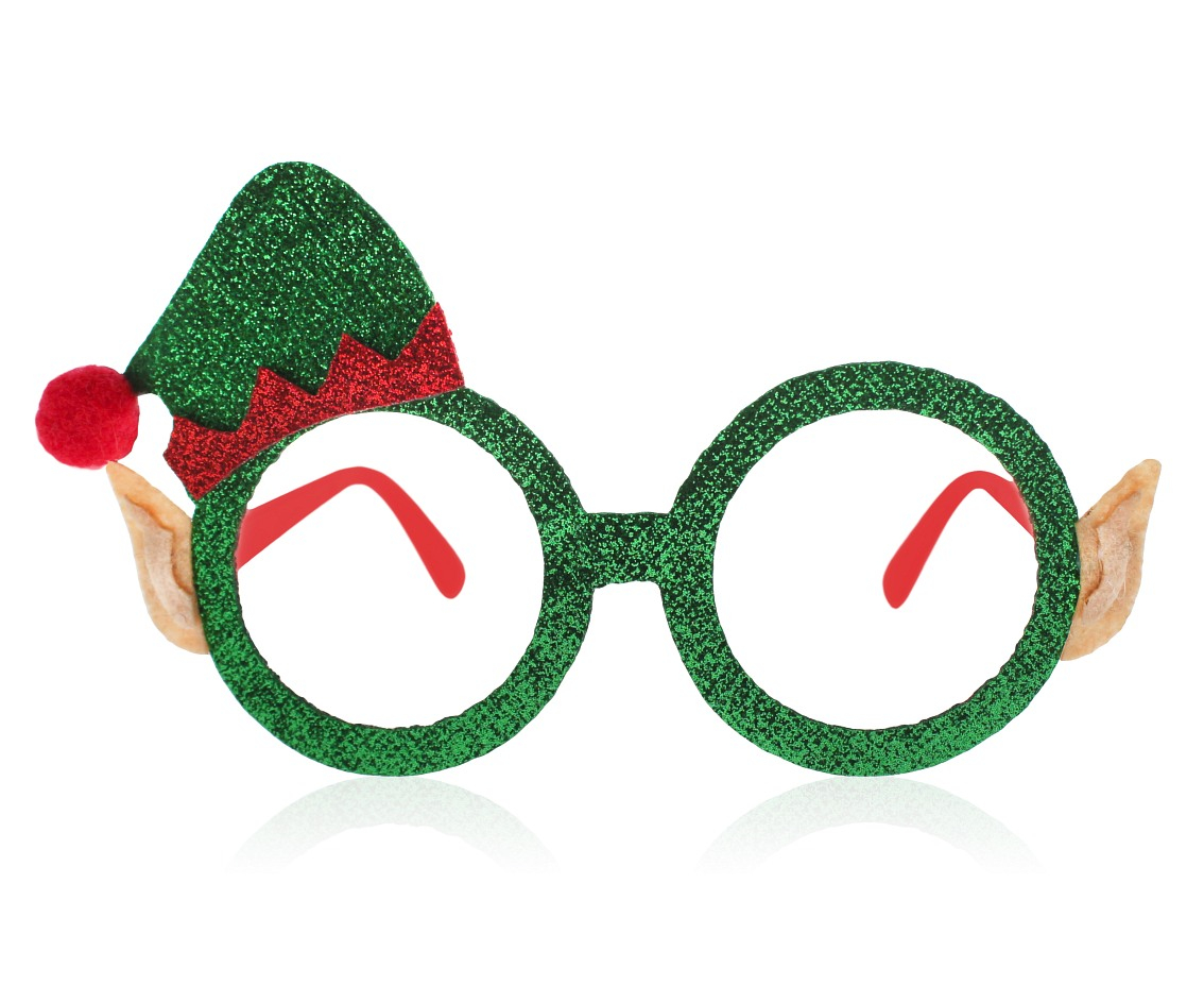 Ochelarii combină o ramă elegantă cu sclipici (brokat) verde cu elementul amuzant al unei căciuli de elf. Designul include căciula de elf în culorile verde și roșu, cu pompon roșu și urechi de elf de culoare ecru pe lateralul ramelor.