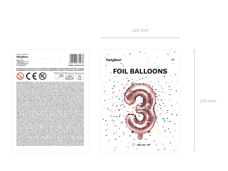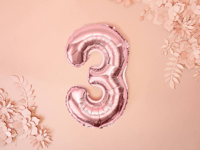 BALON FOLIE ALUMINIU NUMBER "3", 35CM, ROSE GOLD FB10M-3-019R