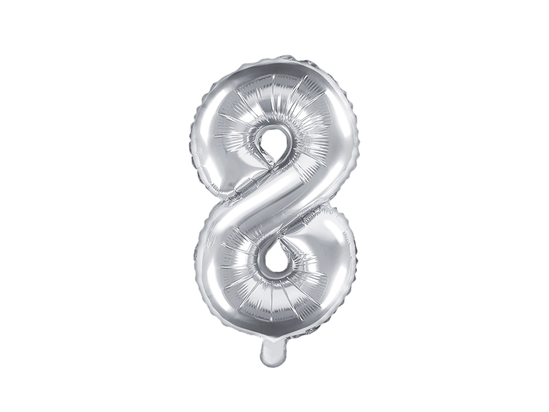 Metallic foil balloon Number "8", silver, size approx. 35 cm (14").