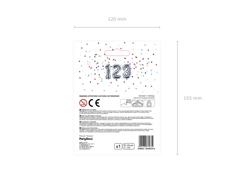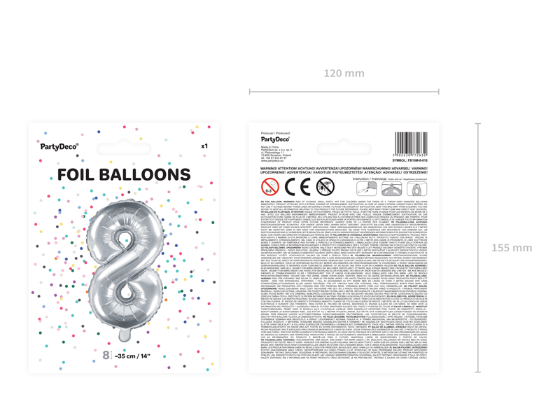 BALON FOLIE ALUMINIU NUMBER "8", 35CM, SILVER FB10M-8-018