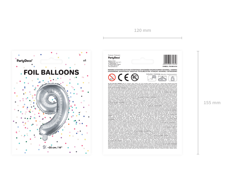 BALON FOLIE ALUMINIU NUMBER "9", 35CM, SILVER FB10M-9-018